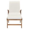 Take a load off and enjoy the sun on this lovely sunlounger!Cushion color: CreamMaterial: Fine sandard teak hard wood with waterbase finishFabric material: 100% polyesterHardware material: Galvanized steelSize: 76.8" x 23.4" (L x W)Seat width: 20.3"Seat height from the ground: 13.8"Armrest height from the ground: 20.7"Backrest adjustable in 3-positionsAdjustable footrest in 4-positionsWith a pull-out tableAssemble required: YesDelivery contains:1 x Sunlounger1 x Cushion